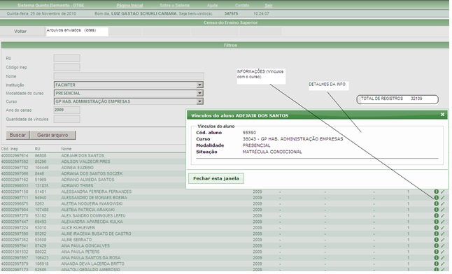 O Principal objetivo desde projeto era participar anualmente de um evento em Brasília - DF no Ministério da Educação. Havia um modelo padrão de exportação de dados para todas as universidades do país. Atuei como representante de TI da Faculdade junto a demais membros do corpo docente, entendendo os modelos e trazendo conhecimento para as equipes desenvolverem um sistema capaz de exportar e corrigir em tempos todas as informações necessárias da instituição; alunos, disciplinas, docentes, cursos entre outras. Por fim gerar lotes de arquivos que possibilitem fazer o upload na plataforma do INEP, de acordo com os prazos estabelecidos.