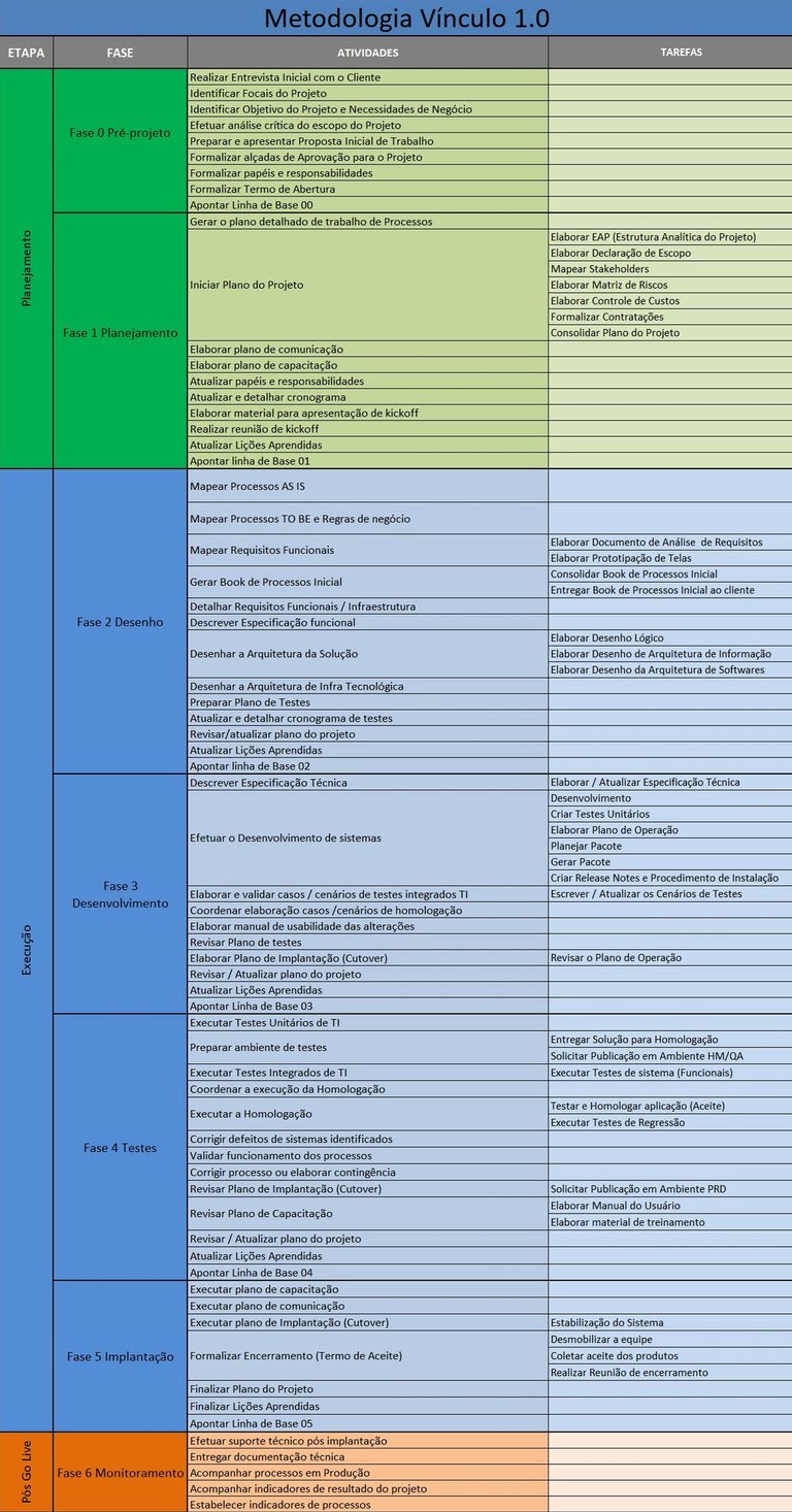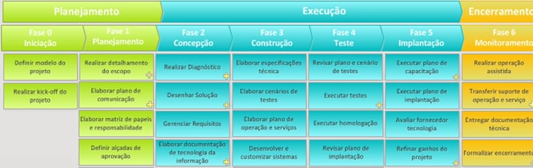 O Projeto continuou, em seguida com treinamentos para todas as equipes de TI, com foco em cada etapa, onde atuei com mais profundidade nas seguintes etapas abaixo: