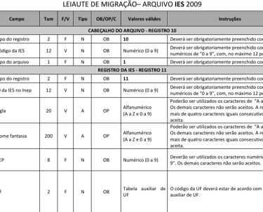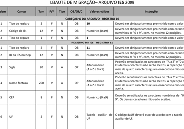 Padrão de Exportação dos Dados Estabelecido pelo INEP.