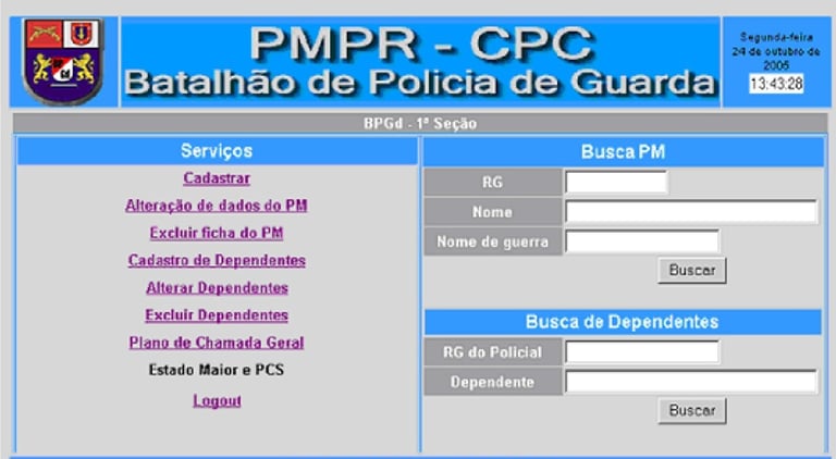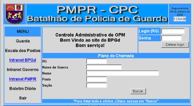 2005 - Sistema de Controle de efetivo da Polícia Militar - Intranet - Batalhão de Polícia de Guarda
