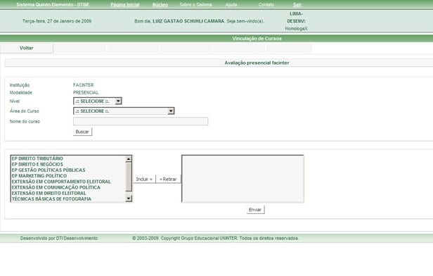 Em 2008 iniciei meus trabalhos no universo corporativo, durante 4 anos atuei em projetos estratégicos educacionais, pois a empresa estava em constante crescimento. O Sistema de Gestão estava concectado ao antigo ERP denominado EVEREST da ACOM Sistemas, posteriormente foi todo migrado para o AX Dynamics. O Sistema Educacional , era conhecido como 5º Elemento e tinha diversos módulos educaionais, onde tive a oportunidade de criar e gerenciar o DEV de alguns deles. abaixo os mais importantes.