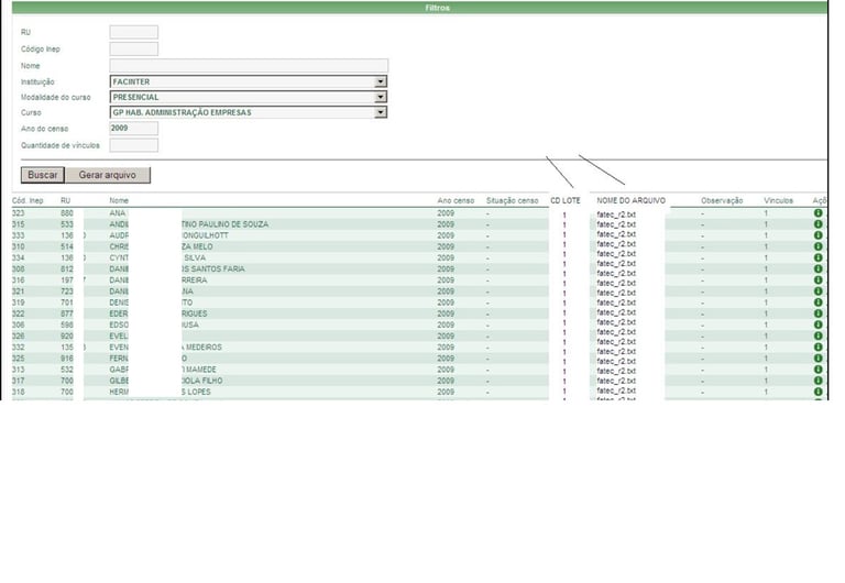 No primeiro ano em 2009 como não foi possível desenvolver o sistema, precisei gerar toda a massa de dados de forma manual com "Stores Procedures" direto no banco de dados SQL Server, posteriormente desenvolvi um sistema capaz de buscar informações e gerar estes lotes de arquivos.